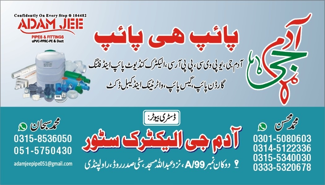 Naveed Pvc Pipe Factory was established in 1985.Ever sinces their incaption, Naveed PVC Pipe have laid a strong emphasis on quality practices. Keeping in view the growing demand of quality PVC Pipe in Pakistan has established another manufacturing facility under the name of Adam Jee PVC Pipe Factory in 1997. Now it in private limited company with the new name of Adam Jee Plastic Industries (Pvt) Limited.